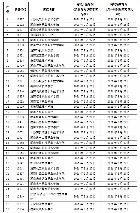 1.单独招生测试工作由各高职院校按照相关文件要求组织实施,具体测试时间由各高职院校根据有关要求自行安排(各高职(高专)院校测试时间参见如下安排表)。