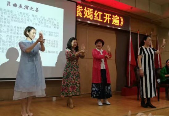 “原来姹紫嫣红开遍,似这般都付与断井颓垣,良辰美景奈何天,便赏心乐事谁家院。朝飞暮卷, 云霞翠轩,雨丝风片, 烟波画船,锦屏人忒看的这韶光贱。”清逸婉转的昆曲,让台下的音乐教师们如痴如醉,跟着罗艳老师一起学唱。