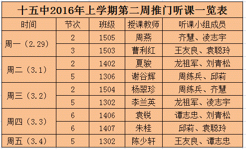 本学期,十五中把推门听课工作及落实课后教研作为一项常规的教学教研活动开展。此项活动的开展,促进了老师们在教研中反思、在反思中提升,也为今后教学工作指明了方向,更有利于实现学校教研工作的有效性和科学性。