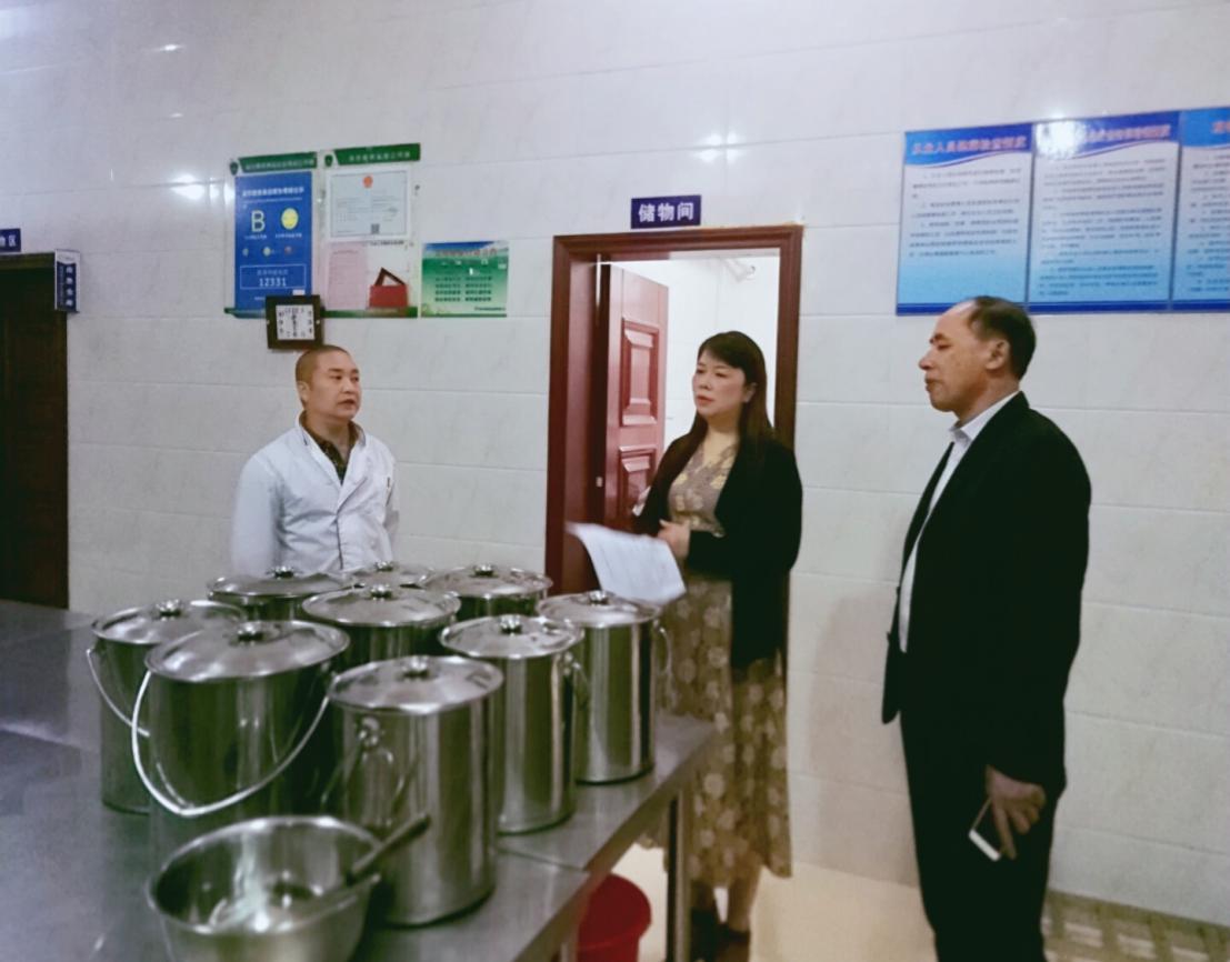 4月23日上午,芦淞区城郊小学片首席督学张璐来到龙泉小学,对学校食堂管理及食品安全进行全面督导。在学校书记兼督导室主任的陪同下,张督学实地查看了学校食堂,检查了原材料采购台账、加工操作过程、餐用具清洗消毒、食物留样、后厨环境卫生等,对学校实行校长负责制、缴费陪餐制的落实进行了细致督导,对学校食堂每学期开展的"食堂开放日"活动和"三晒三评"给予了高度评价。中午,张督学与学生一起共进午餐,亲切询问师生对学校食堂的满意度。