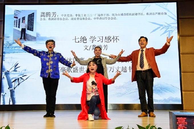 活动现场安排了四个精品节目与专家访谈穿插进行,用舞台艺术的形式巧妙地诠释“家有诗书福自来”的主题内涵。热情奔放的开场舞《快乐的老爸老妈》书写家的温馨与快乐;少年演讲《家风润心泽后人》,引经据典传递良好的家风润泽下一代的理念;感人肺腑的情景剧《学校是我家》展示高家坳小学“大家”牵手“小家”, “大爱”温暖学生的家文化;原创诗词花鼓戏联唱《家训·读书感怀》,社区学习共同体的学员们用喜闻乐见的花鼓戏演唱形式表现自创诗词的高雅,表演形式让人耳目一新,诗中的质朴家训、勤勉家风更让人感怀。