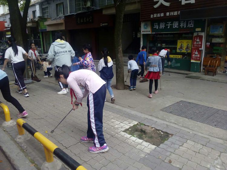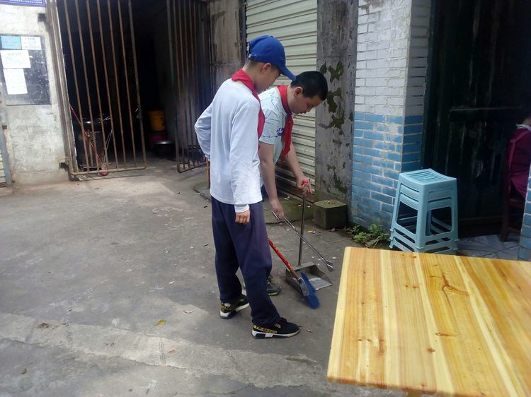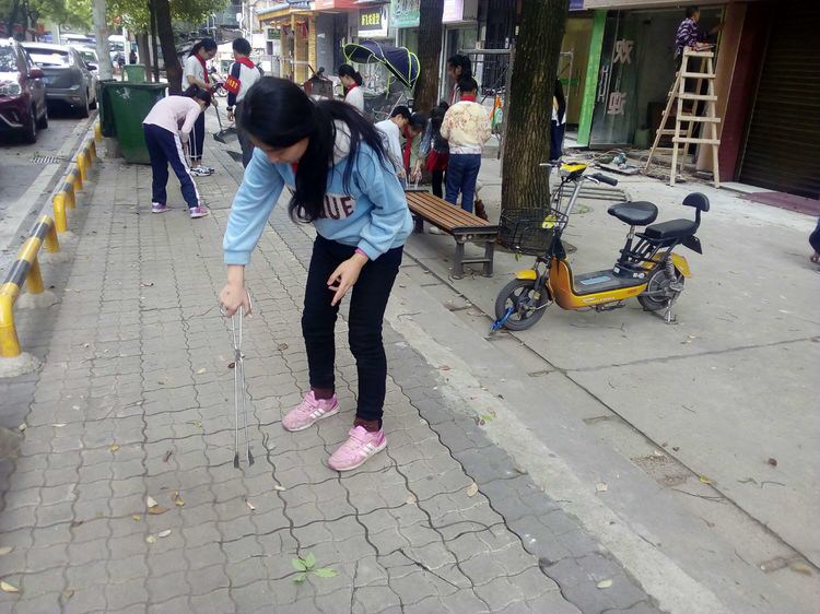 龚玮老师提前将同学们分成四个小组,分别安排在井墈社区、党建广场、沿街门面、休闲长廊等不同的地点。各组同学以组长为领队,到达各自劳动实践地点后,快速进入了劳动的状态,有的同学拿着扫把、撮箕进行打扫,有的同学用火钳细细找寻微小垃圾,有的同学将垃圾拾进了随身垃圾袋……个个干得热火朝天,人人忘记了劳动的辛苦,忘记了天气闷热,全身心地投入到“垃圾不落地,校园社区更美丽”的行动中。