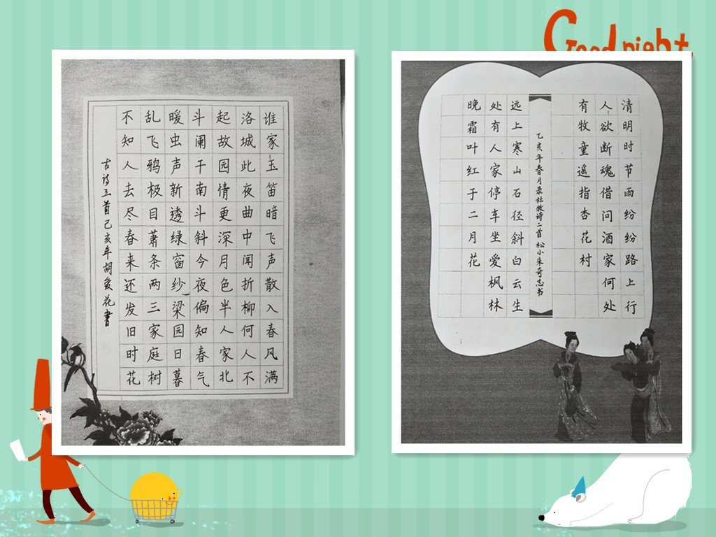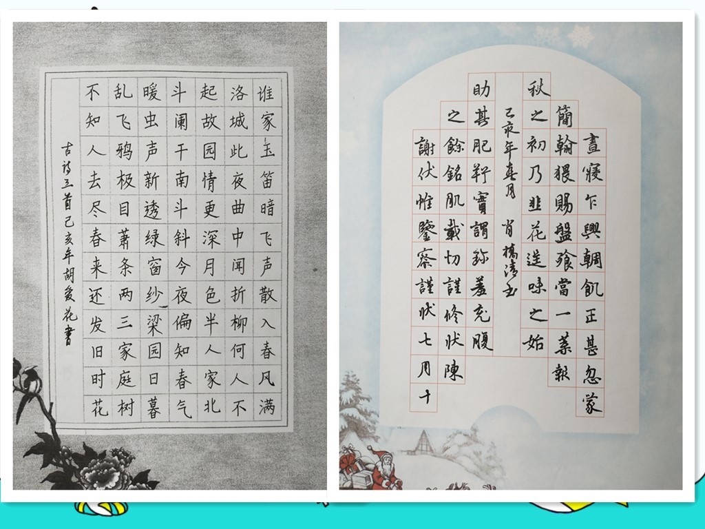 本次书法大赛,我们聘请了热爱书法、功底最深厚、笔力最有劲的肖桥清老师担任评委,肖老师经过仔细品析、再三斟酌评出了8个一等奖,11个二等奖。同时,也根据作品,给所有参赛选手提出的点评,旨在帮助教师写好字。
