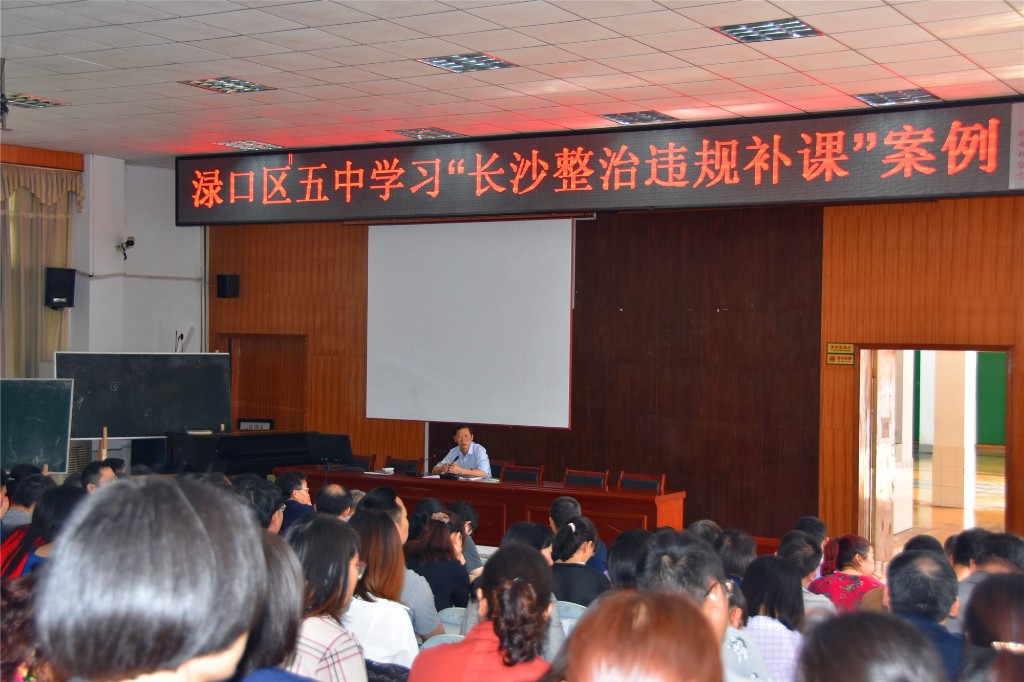 4月25日上午,株洲市渌口区第五中学全体教师在校多媒体教室学习“长沙整治违规补课”案例,进一步加强教师师德师风建设,规范教师从教行为,教育引导广大教师自觉遵循中小学教师职业道德规范,自觉拒绝违规补课。