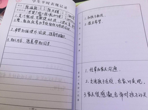 开学已有两个多月,4月28日博雅小学督导室和德育处的大队辅导员一起进行了第二次《班主任工作手册》。本次检查的内容包含周工作计划、学习平时表现、班会活动、好人好事、工作记录、学生个别记录和学校联系等七个方面的记录,查看记录是否及时详细,次数是否达到要求。