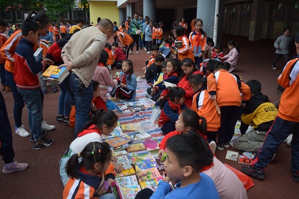 升国旗、唱校歌环节过后,校长龙洁致热情洋溢的开幕词并宣布读书节开幕。随后,学校家长委员会理事长胡宏兵从为什么读书、读什么、怎么读等三个维度做读书分享,激发大家的读书热情。接下来,青年教师成长俱乐部的老师、家委会代表、1606中队通过经典吟诵的方式描绘了以读书为乐、以读书修身、家校共育书香氛围的美好愿景,高潮迭起的诵读环节让书香浸润校园。开幕式在2800师生和家长代表的读书誓言中落下帷幕,但读书、爱书的行动在继续,紧随开幕式之后的全校性少先队活动——红领巾书市,将对书的热爱推向新高潮,队员们通过书籍的交换,不仅分享了好书,更增进了爱书的情感交流,不少家长也积极投身活动,气氛热烈。