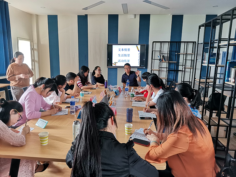 比赛结束后,评委们和参赛选手、观摩教师一起来到体育路中学初中英语学科基地,举行了一场教学沙龙活动。活动由学科基地班主任、体育路中学英语教研组长易文老师主持,易文老师曾经被国家汉办派往美国支教三年,她首先分享了在美国时课堂情境教学的情况,例如文本情境,生活情境,活动情境等。接着大家围绕“探讨回归语言教学本质之路”这一主题,结合自身的成长经历,开展了轻松愉快的分享和交流,并对两位年轻教师的课堂表现给予了细致点评和中肯建议。针对大家发言中的疑难和困惑,如教师语音语调的打磨、阅读教学中的段落处理、语言有效输入与输出等问题,区教研室中学英语教研员陈柳老师和大家进行了深入细致的探讨和交流。