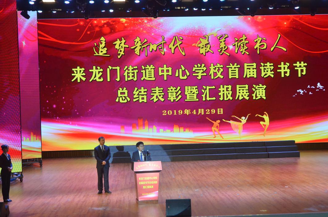 醴陵市来龙门街道中心学校首届读书节总结表彰暨汇报展演活动在该中心学校党总支书记、校长凌俊致辞中拉开了序幕。他指出,来龙门辖区内,"书香校园"创建已蔚然成风,各学校阅读环境温馨雅致,班级图书角书籍丰富,阅读活动开展积极,读书让广大师生视野更开阔,气质更高雅!