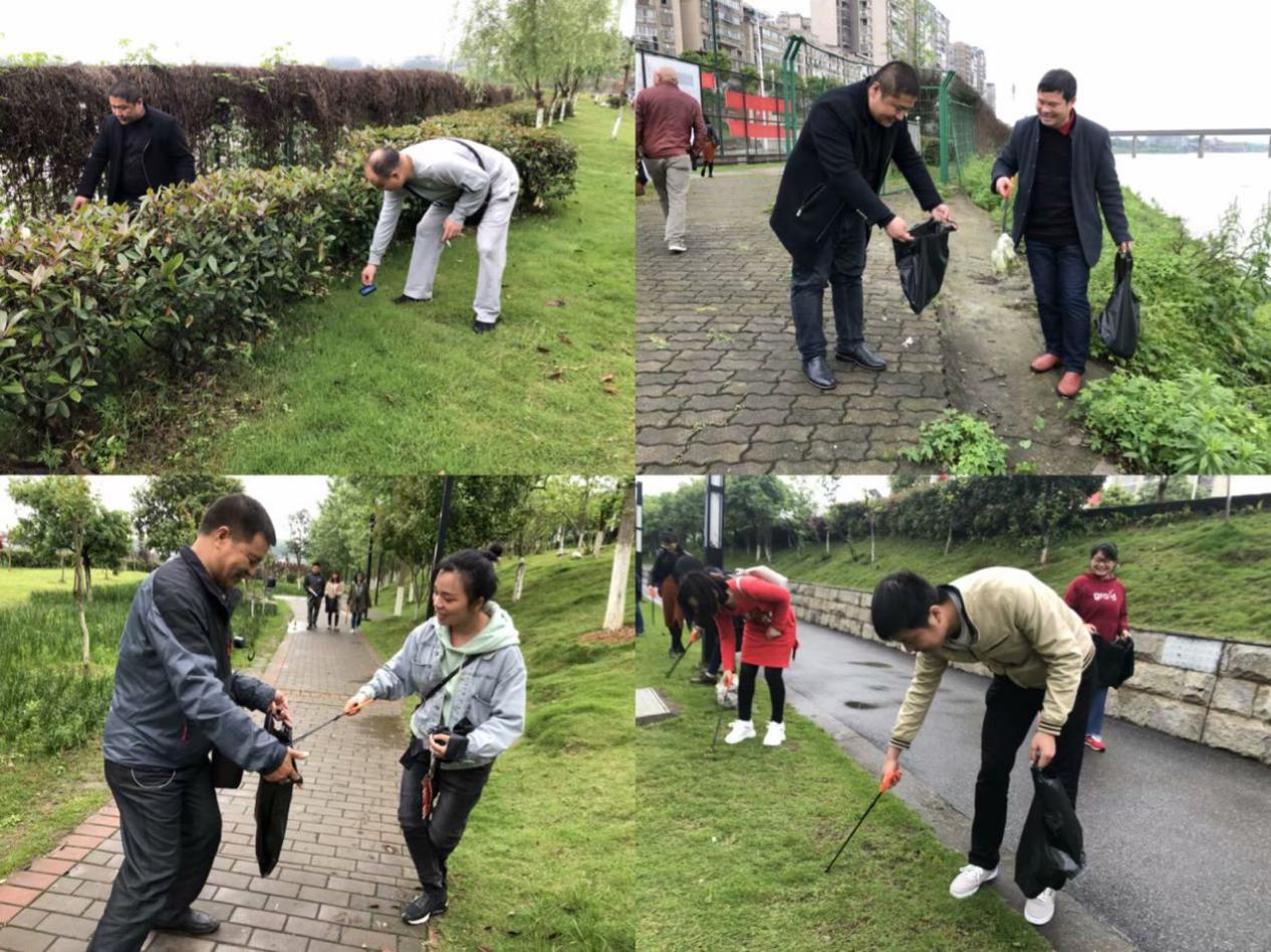 座谈会后,青年教师一行来到了湘江风光带,对沿线的人行道,绿化带进行垃圾清捡。每个人都手拿塑料袋、垃圾夹等工具迅速投入环保活动之中,环顾四周寻找被丢弃的垃圾。老师们个个干劲十足,不怕脏,不怕累,捡拾垃圾,哪怕是藏在花坛的一个烟头、纸屑也被一一清捡出来,装进垃圾袋。经过一个半小时的奋战,老师们手中都已"战果累累"。经过努力,湘江风光带沿岸显得更加干净整洁了。