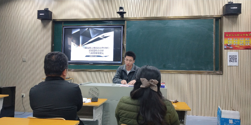 体育路中学刘泽江老师以解直角三角形测量问题为主题,以典型的模型——母子型和背靠背型为抓手,通过对比历年株洲中考和2019中考动态,三角函数搭建非特殊角三角形的边角关系,让学生找到“翅膀”来构造直角三角形和矩形,并诙谐式通过网络流行语及时总结方法,由浅入深,通俗易懂。