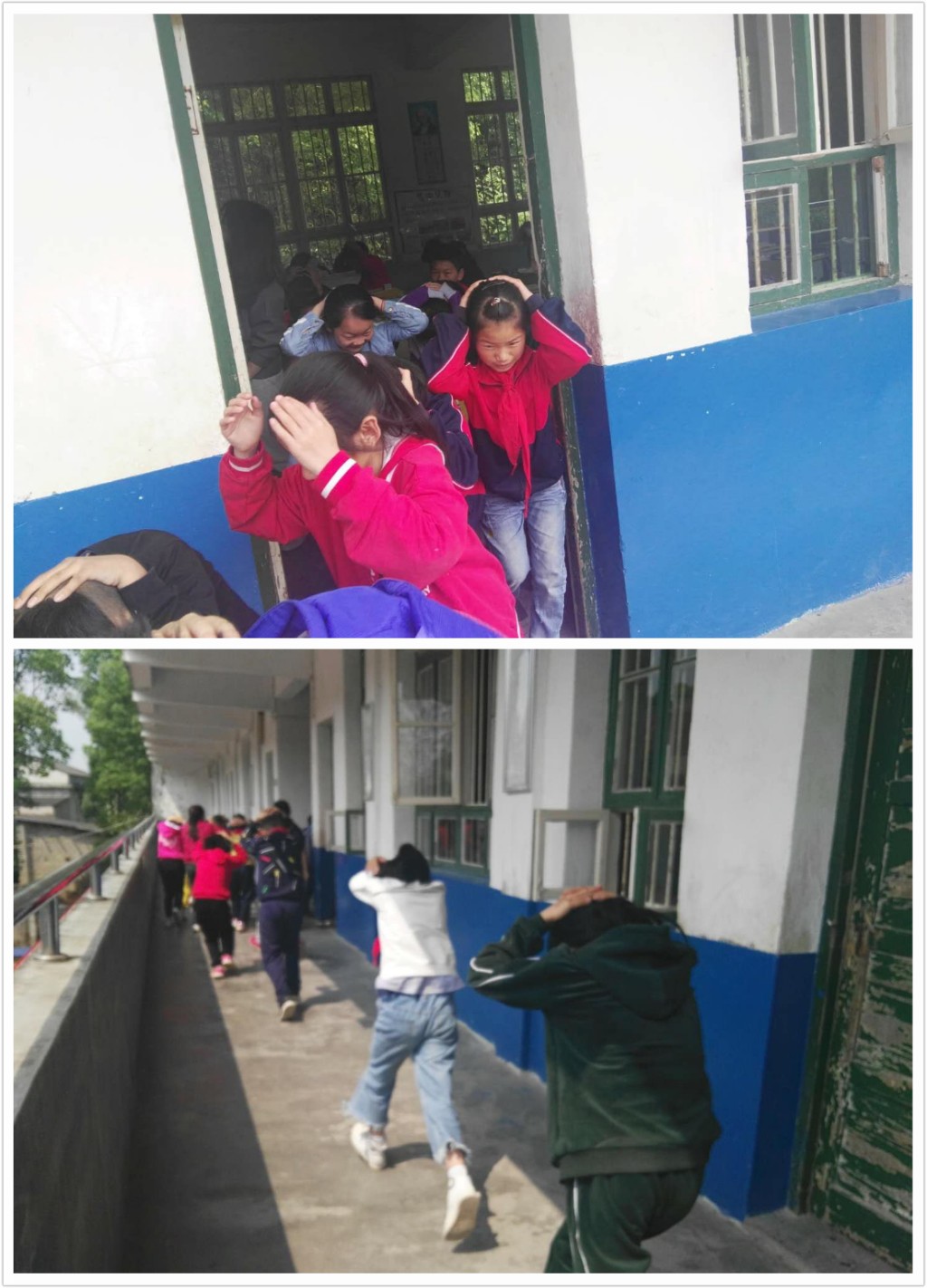 5月9日上午,旭日小学校长袁战军带领全体师生进行防震消防安全疏散演练。学生正在上课时,地震警报突然响起,学生能在教师指挥下迅速抱头、闭眼、躲在各自的课桌下。等待片刻,学生双手保护头部,有组织的撤离到开阔、安全的地方。