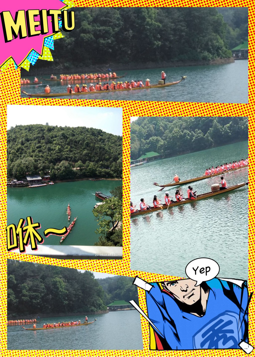 经过短暂的停留,我们来到了龙舟基地。20人一组,穿戴好装备后我们齐齐登上龙舟。两组队伍誓要进行PK,看看谁才是真正的高手,在鼓声的指引下,大家齐心协力,既紧张又拼尽全力划龙舟,看,大家玩得多开心!