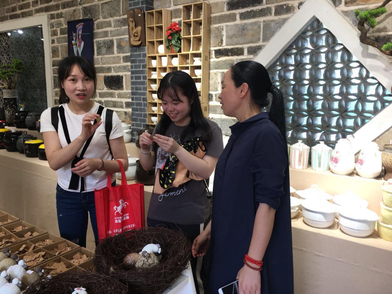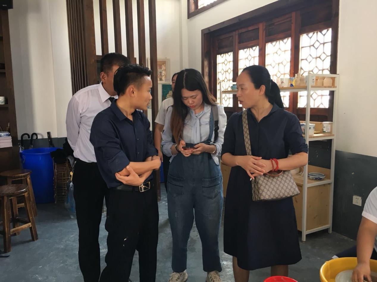 到达瓷谷科技研学部,陈校长和易靖老师向陶艺专家请教、学习