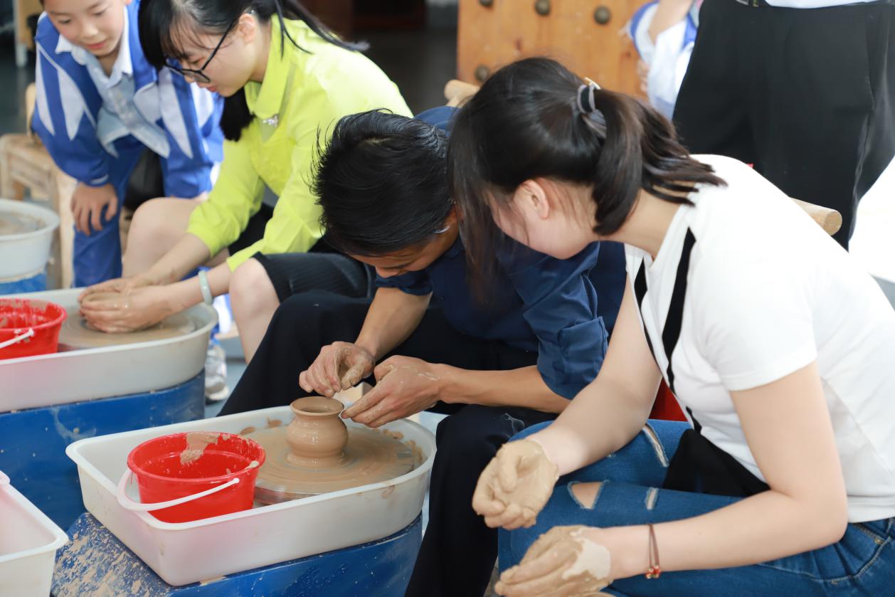 在陶艺师傅们的指导下,老师们亲身体验陶艺制作