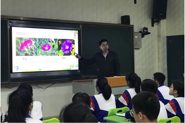 看似糙汉子的丁老师,却能熟练地运用希沃白板授课。用花朵从早到晚颜色变化的生活常识引入课题,把生物问题结合生活实际,从而降低了课程学习难度,使得整堂课把握起来轻松明了,课堂气氛融洽。对于生物理论知识,叙述条理分明,言简意赅。