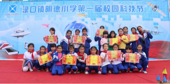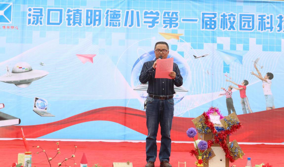 精彩节目和精美作品迎来了阵阵掌声。接着由明德小学张洪洲校长宣布第一届科技节正式开幕。本届科技节以"节约、创新、发展"为主题,学生创新与实践技能大赛分为1年级组、2-3年级组、4-6年级组三个组别,每个组别又分为个人项目和集体项目,个人项目有科幻画、"变废为宝"、纸折飞机直线距离赛、魔方竞技等;集体项目有多米诺骨牌、丝网花、铁丝陀螺、橡筋动力飞机留空计时赛、气弓箭打靶、步步高等11个比赛项目。