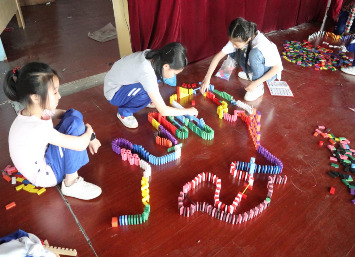 多米诺骨牌比赛现场最为激烈,比赛要求骨牌基数150片以上,图形设计要创新,结构要呈现复杂多样,倒牌机关设计要新颖;寓意解说清晰流畅。