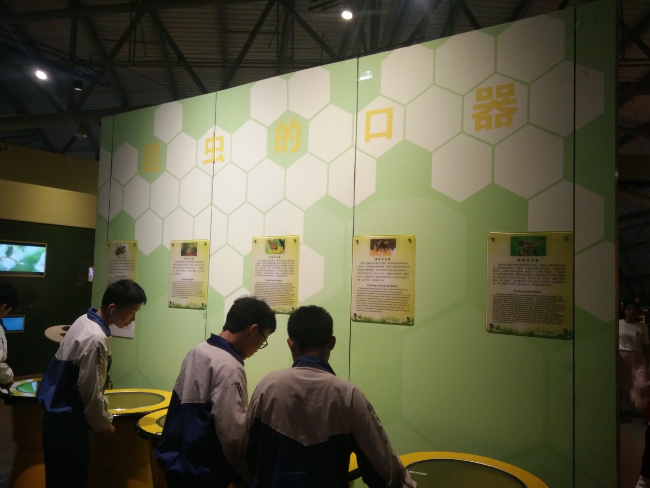 中餐之后同学们来到了研学之旅的第二站----湖南省科技馆。科技馆有三层,共设置制造天地、材料空间、能源世界、地球家园等9个展区,内容涉及数学、物理、生命、信息、能源等不同科学领域。同学们走进科技馆,仿佛走进了知识的海洋。有的驻足在节水总动员、有的在体验太空探索、有的在仔细观察着昆虫的口器、有的在推敲机械驱动的原理、有的在倾斜房屋里尽情欢笑……两个小时的活动时间不知不觉就过去了。同学们切实体验了一把科学头脑大爆炸。