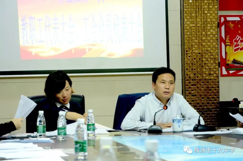 5月13日晚上,株洲市第十九中学召开第五届第一次教职工代表大会,大会由学校工会副主席谭穗军主持,过斌校长、邱莉书记及职代会成员60人与会。