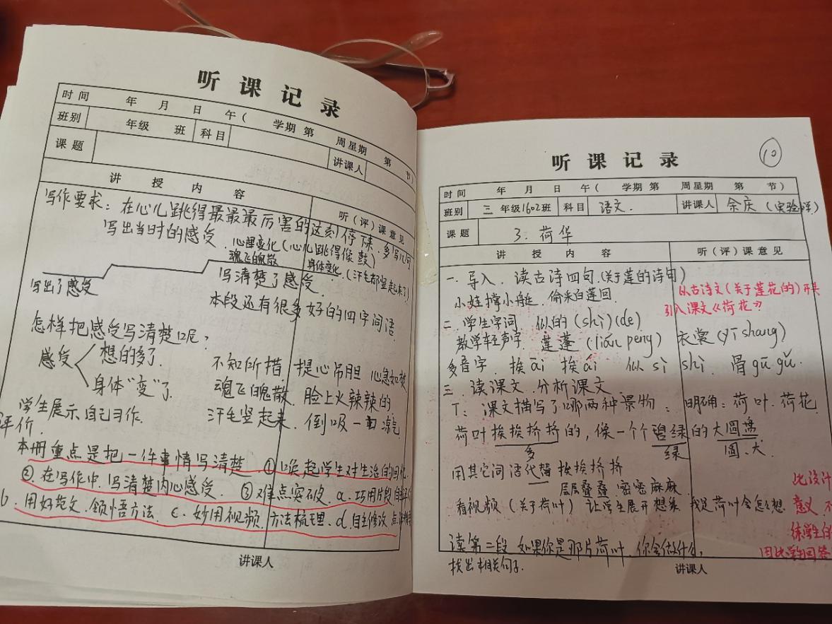 听课笔记检查过程中,大部分老师听课节数达到了学校要求,听课记录书写工整,内容齐全,记录详实,有评课及自己的思考。