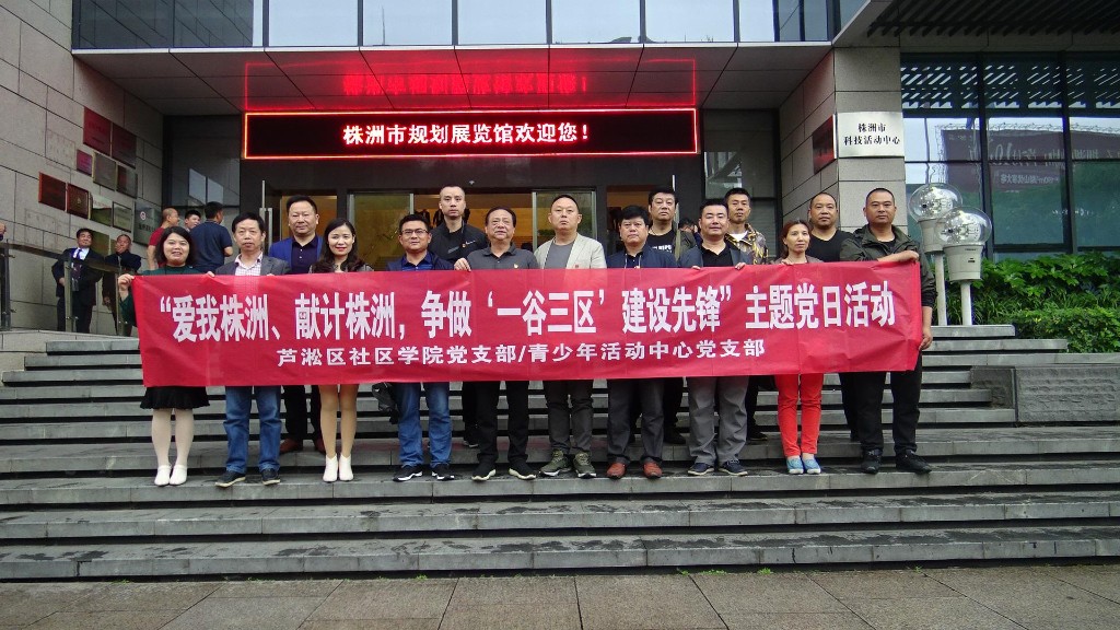 5月15日上午,社区学院党支部和青少年活动中心党支部联合开展以“爱我株洲、献计株洲,争做‘一谷三区’建设先锋”为主题的党日活动,组织全体党员参观株洲市规划展览馆和中国动力谷展示中心。