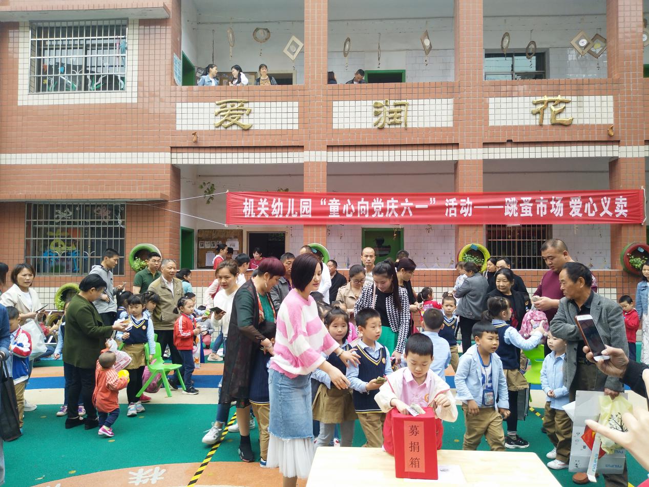该园围绕其党建品牌开展了"童心向党庆六一"跳蚤市场爱心义卖活动。