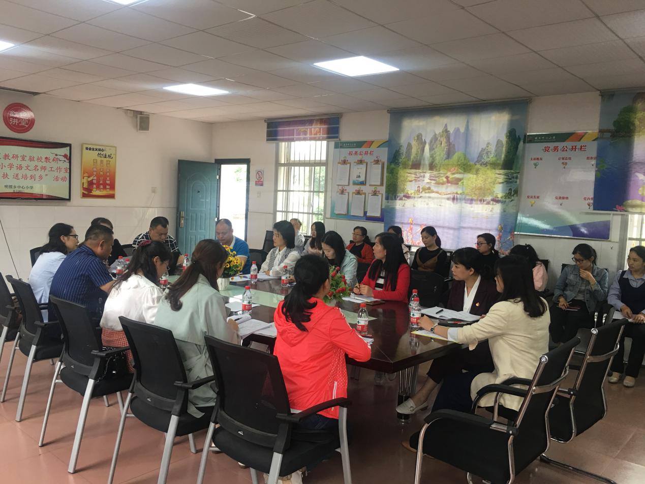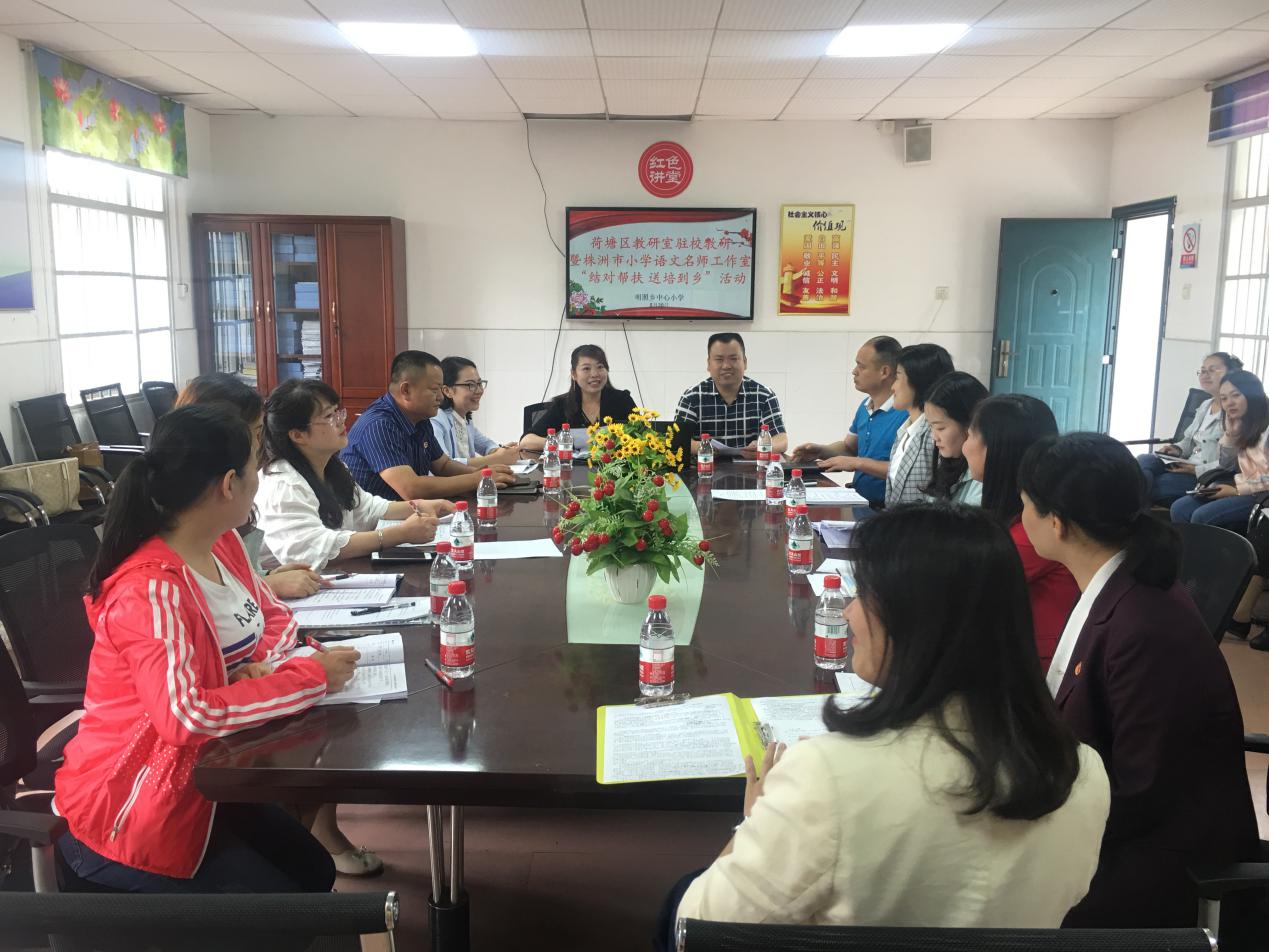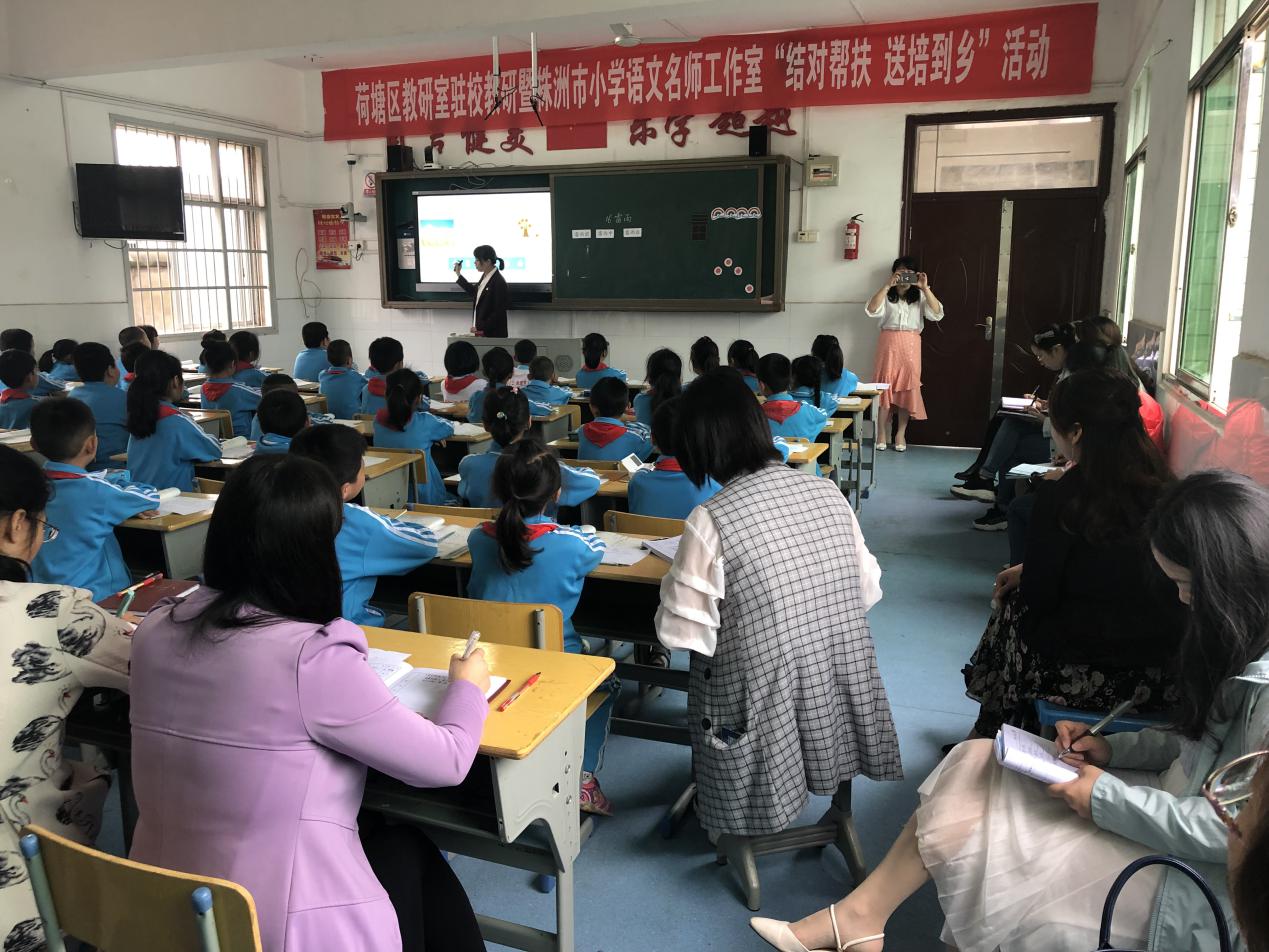 为了充分发挥区教研室、市级名师工作室的示范、引领、辐射作用,以立足前沿、实践探索、互助交流,共同发展为核心,促进教师间交流和共同发展,2019年5月20日,荷塘区教研室驻校教研暨株洲市小学语文名师工作室"结对帮扶 送培到乡"活动在明照乡中心小学举行。