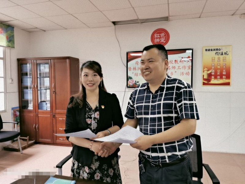 随后,株洲市小学语文名师工作室主持人、戴家岭小学校长袁灿英与明照乡中心小学校长田立新签订了《株洲市名师工作室、学科(培训)基地结队帮扶协议书》,并承诺将带领工作室核心成员通过学科教学研讨、教学信息交流、专题培训等活动到明照小学开展为期两年的帮扶活动。