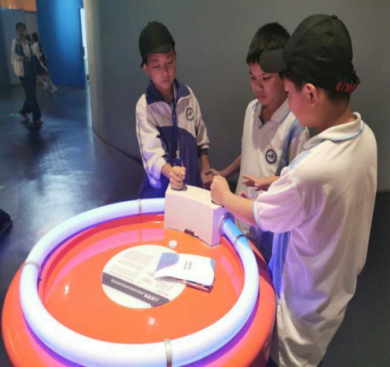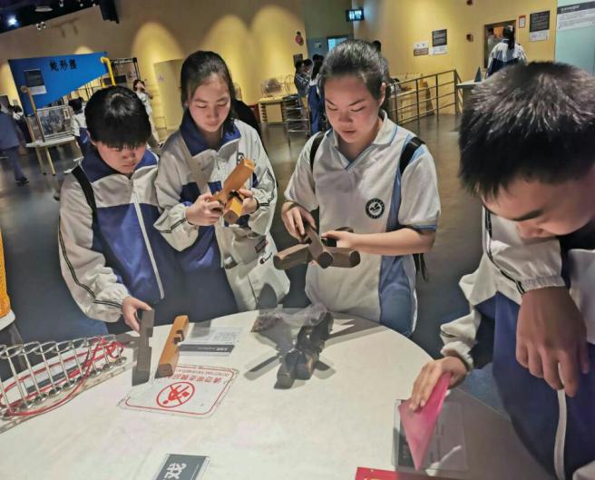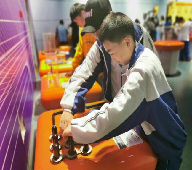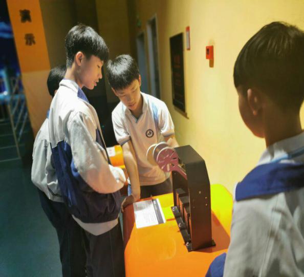行至湖南科技馆,同学们在科学与幻想中感受着人类智慧的神奇与伟大。科技馆内,"制造天地""材料空间""能源世界""信息港湾""地球家园""生命体验""数理启迪""太空探索""儿童科学乐园"等9个展区,从制造、能源、材料、信息、环境、数学、物理、生命、天文等领域让同学们感受到了科学的无穷魅力,感受到身为一名科技强国国民的自豪。