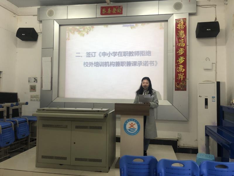 自查第一步:4月份,开展了对在职教师从事有偿家教、办班及校外兼课等行为专项督查。全体老师签订了承诺书,以规范我校教师的教育教学行为。