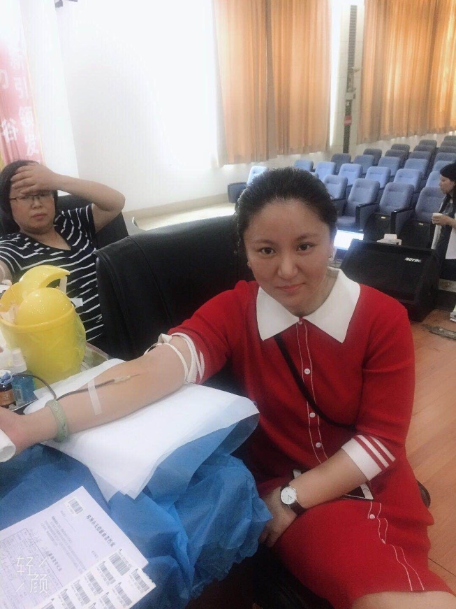 前来献血的志愿者中,有两名女老师特别值得关注,一位是党员教师邓博思,她已经多次参加无偿献血;另一位是刚结婚不到一个月的团员教师陈嘉欣。她们用自己的行动证明了:党、团员就是一面鲜艳的旗帜,巾帼不让须眉!