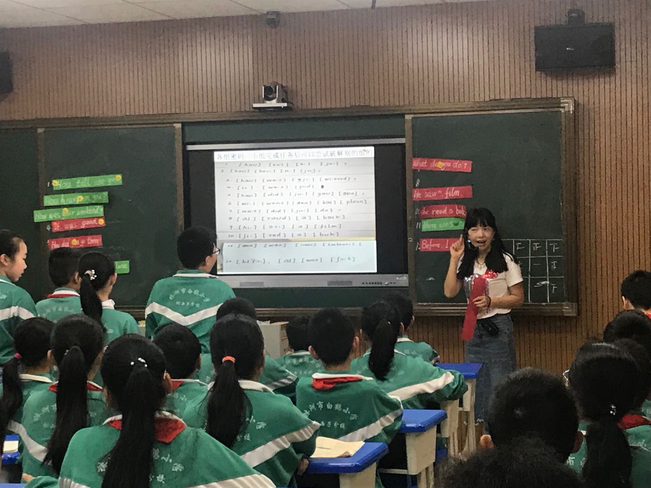 首先,王新颜老师展示了一堂精彩的音标教学课。课堂中,王老师以任务型教学贯穿始终,把单元音编成手语操,把双元音编成小故事,采用绕口令,小组合作,拼读单词寻宝物等多种形式练习音标,让学生见音能读,见音能写,最后练习突破会考难点的语音题,本堂课以多种形式突出重点,突破难点,既生动有趣,又高效实用。