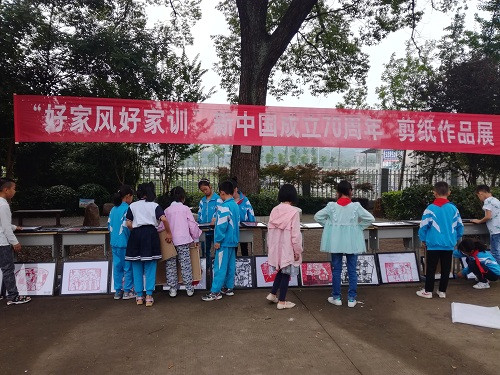 六一来临前夕,以学校艺术节、家文化建设为依托,举全校之力特举办了2019年“我和祖国同一个梦想”庆六一暨家文化主题活动。会场上座无虚席,家书、家训家规的展板、艺术节表彰海报、剪纸作品展示区为会场进行了更为丰富的点缀。