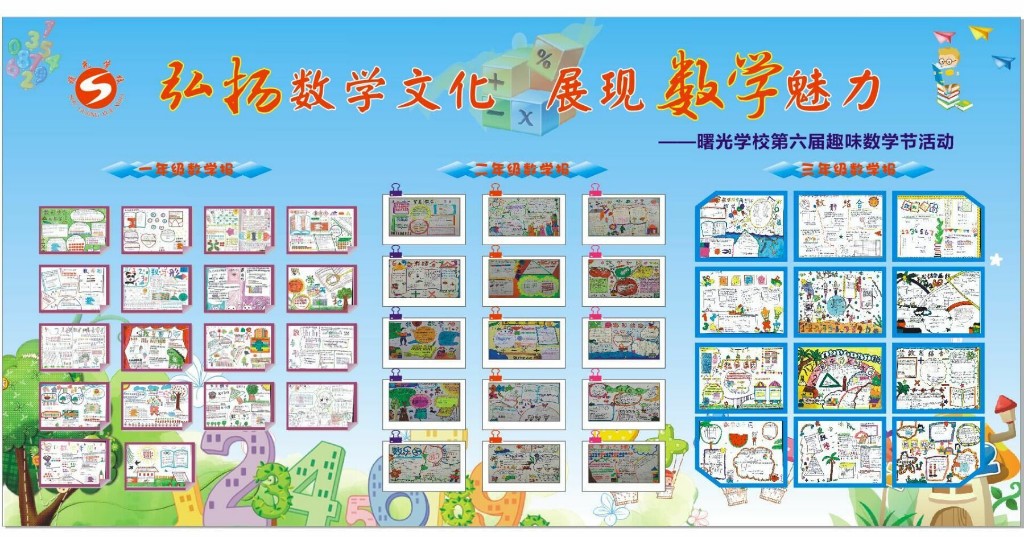 数学家罗素曾说过:“数学不仅拥有真理,而且拥有至高无上的美。”五月初始,各个年级的数学老师就开始思考并出题,以“数形结合画数学”为主题,让学生创作相关数学小报,参加学校“第六届数学节”序列活动。快来看看各个年级的数学小报,让你体会数学与美的完美融合。快来欣赏,这些“数形结合”的创作是多么有想象力。我们把孩子们的作品展出在校园里,成为了数学节上一道绚丽的风景!