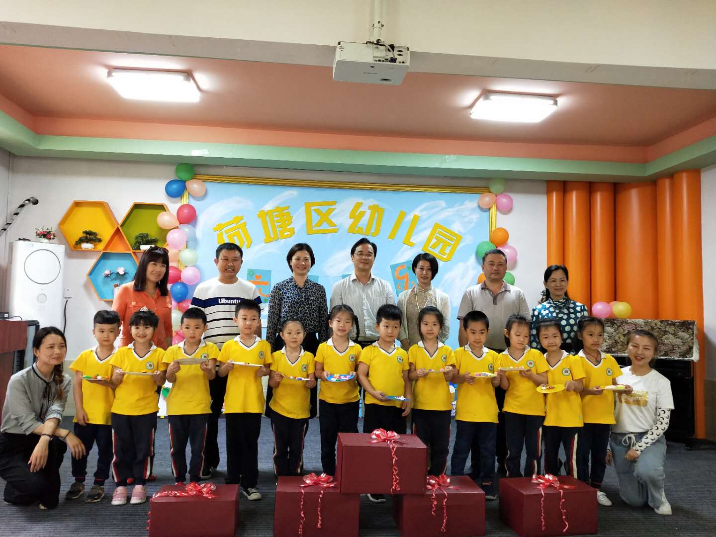 在区幼儿园,区领导为孩子们送上礼物