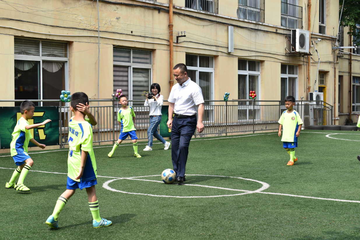 在钻石幼儿园,区委书记邬凌云为孩子们的足球赛开球