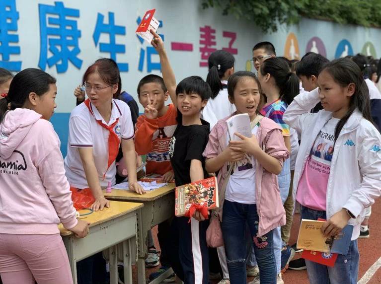 庆"六一"主题队会暨"阅读嘉年华"读书节活动从8:30开始一直持续到了11:45分,孩子们、家长们、老师们都深感意犹未尽。回班之后,全体班主任老师及时对本班学生的闯关情况进行了总结表彰,学校校长刘建辉率领行政团队为各班孩子派发了节日礼物。