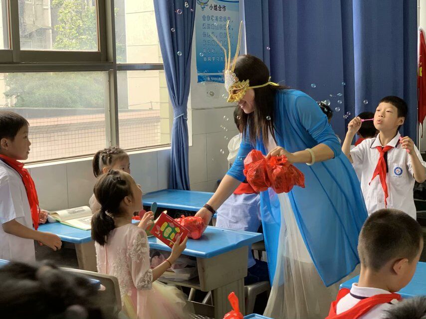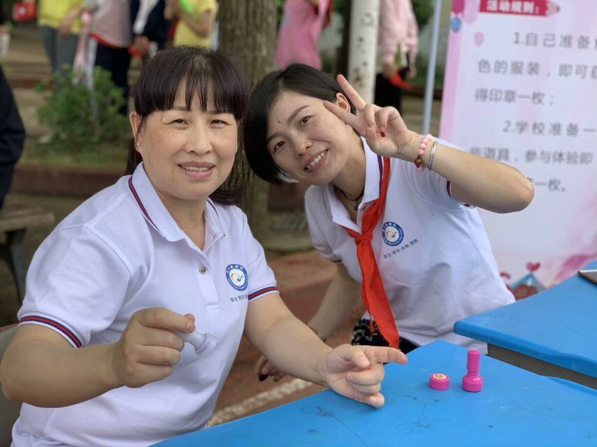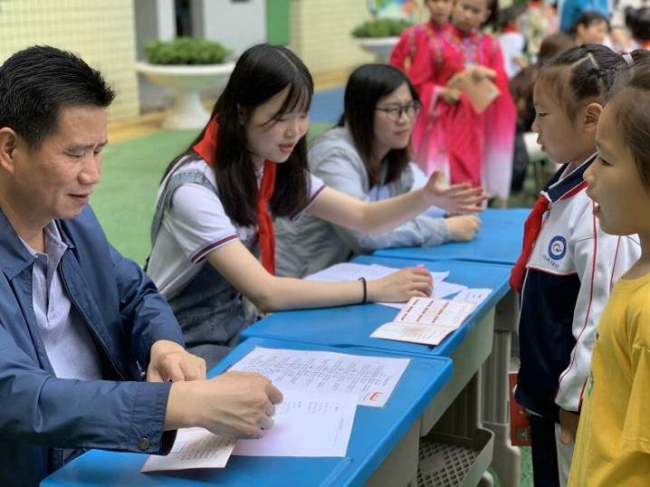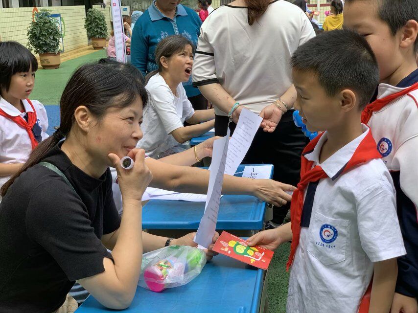 本次活动人人参与,为了让每个孩子充分享受"六一"的快乐、读书的愉悦,活动现场全体老师、上百名家长志愿者相互协作,圆满完成了九项闯关活动。筹备前期,劳虹、郑艳、王江平、王蔚、郭银华、刘悦红六位语文教研组长进行了精心策划和准备;唐甫、王希、杨慧、彭敏、尹著、袁芬芳六位年级组长进行认真的组织安排;食堂工作人员协助四年级语文组完成了600多条谜题的悬挂;吴湘珍老师、六年级102班同学、余玉辉主任、凌军副校长、刘春禄主席、刘建辉校长等一起完成了1000多个气球的打气、捆扎、悬挂;邓婷、彭迎春两位主任相互配合将一面面小国旗串起来悬挂在教学楼;美术组刘燕、刘晓凤两位老师精心制作了学生读书作品展板;徐波涌副书记、凌军副校长和家长一起抬放合唱台;凌军副校长、余玉辉主任冒着炎热扮起了机车人偶……
