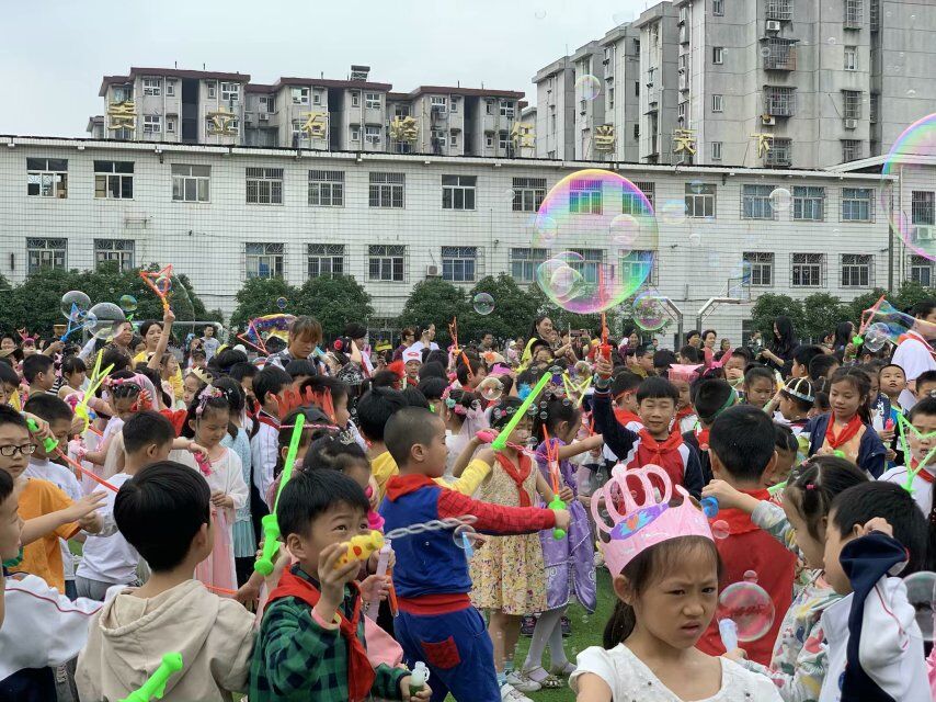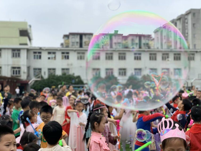 还有什么比玩泡泡更有趣的!你见过全校同学一起吹泡泡的情景吗?当全校1584名(请核实)同学一起吹泡泡,当成千上万个泡泡在清水校园里缓缓升起,清水校园顿时沸腾了,阳光下无数个泡泡闪烁着七彩光芒,学校成了欢乐的海洋,成了大小朋友的巴学园。