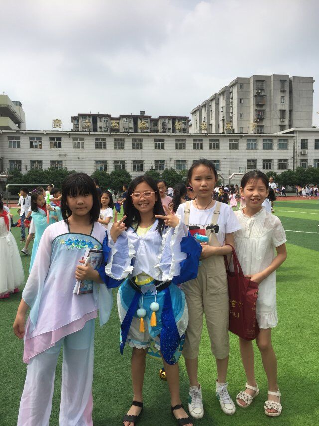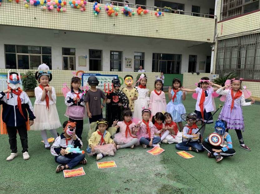 书中人物大游行:活动伊始,校长刘建辉化身神秘的面具女王,向孩子们介绍了"六一"儿童节的由来及意义,并祝全校小朋友们"六一"儿童节快乐。副校长龚景辉和两个机车娃娃也来到主席台为孩子们送上节日的祝福。校园里的孩子们呐,有的穿着白雪公主裙,有的化身魔法学院的学员,有的变成了芭比娃娃,有的则成了稻草人,有的穿上了汉服,有的变成了小花旦……不同的服饰、不同的人物、不同的文化齐刷刷出现在了清水校园里,百家争鸣、百花齐放。