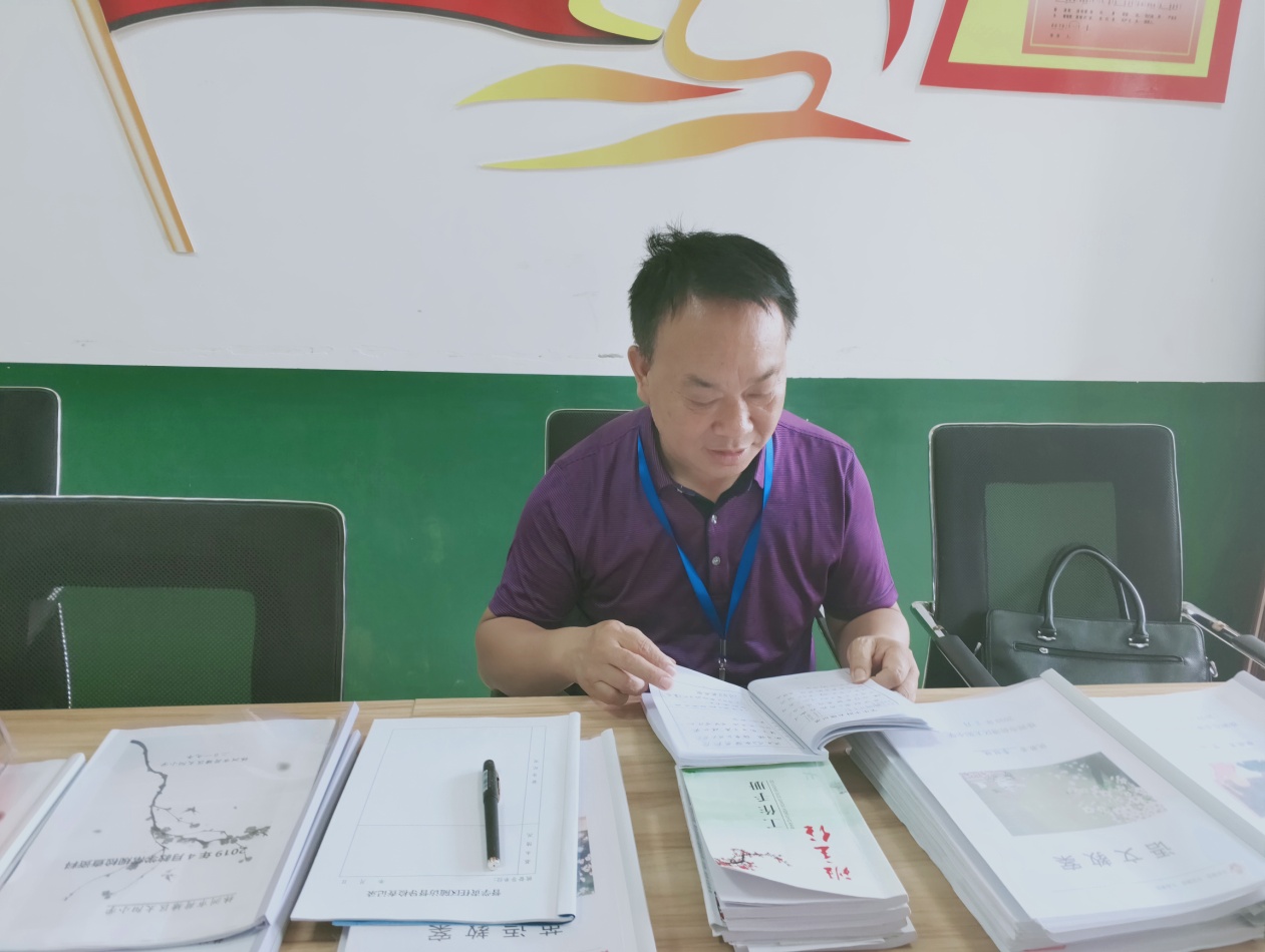 首席督学宾年辉正在查阅教学常规资料