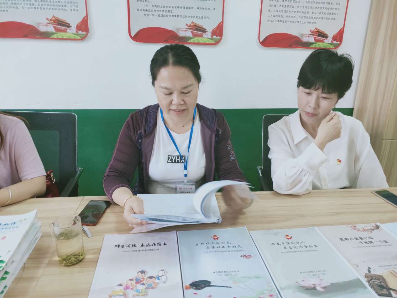 责任督学郭雪辉正在查阅信息宣传统计资料