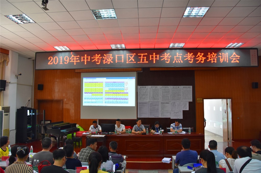 6月15日下午,株洲市2019年初中学业水平考试渌口区考务会议在区五中多媒体教室举行。区教育局主任督学王婵、区教育局副局长李浩治、区教育局副局长彭中辉出席会议,区五中考点主考吕国祎、副主考王忠、局机关涉考人员、全体考务工作者参加了会议。