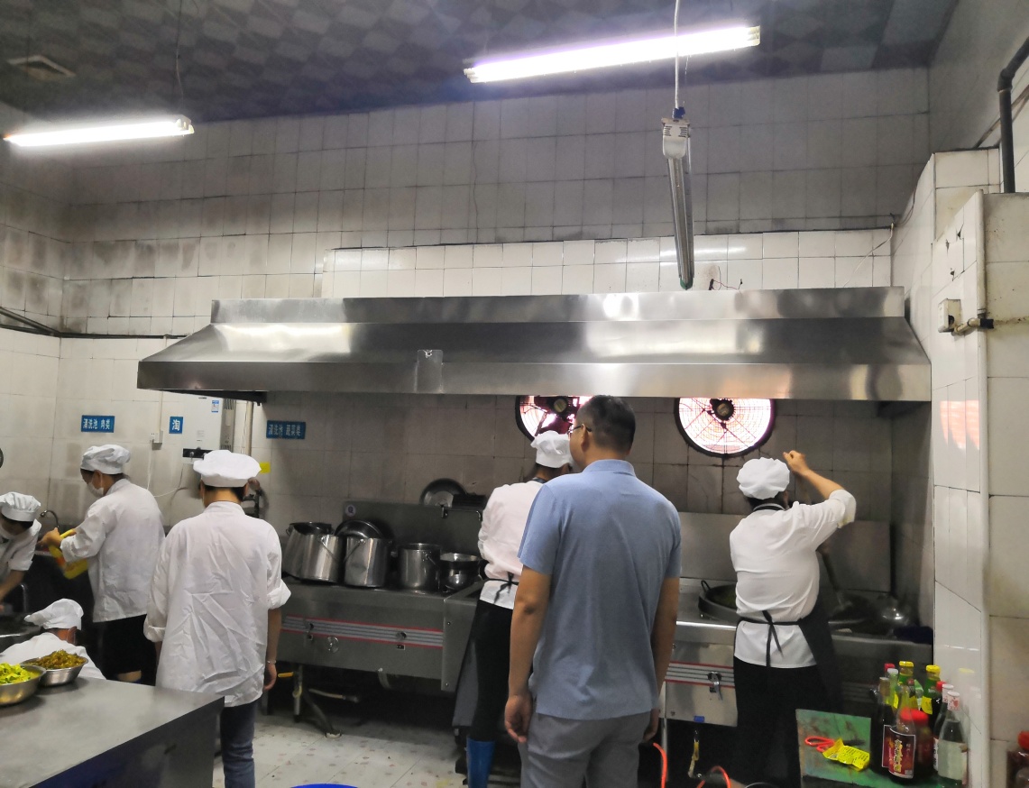 所有行政、督导人员重点查看了食堂操作间的卫生环境、餐具消毒、保洁设施、仓库储物等情况,对食堂的消防安全、用电用气安全、食品材料安全等工作给予了充分的肯定。
