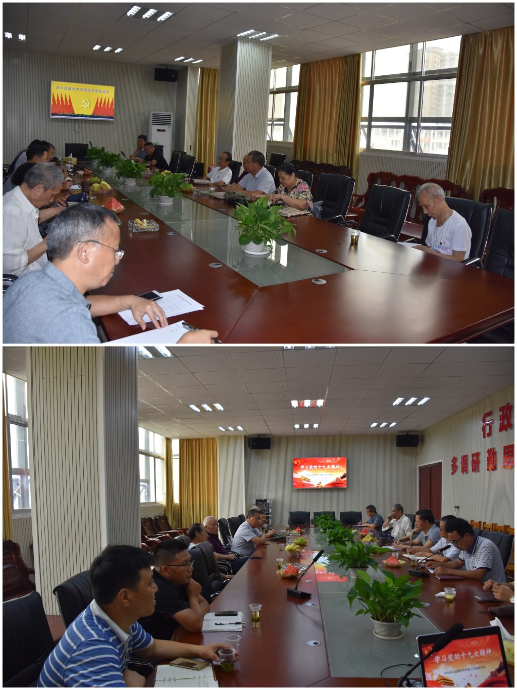 随后,校领导班子及各支部人员与各位退休党员教师一起学习了党的十九大精神。