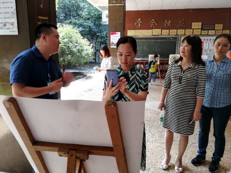 调研中,晏鹏校长向罗曼介绍了我校的基本情况和办学特色。罗曼一行实地查看了教学设施、校园文化环境和教师办公条件,并与老师们亲切交流,详细了解学校的各项工作。罗曼对学校在教育教学各个方面取得的成绩表示肯定,尤其是对学校传承中华传统文化,开设水墨星光和戏曲等校本课程给予了高度评价,鼓励学校在解决大班额、提高办学水平和建设特色学校等方面做出更大贡献,推动"学在荷塘"向更高质量发展。