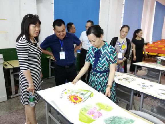 (副区长罗曼对学生及教师水墨作品进行翻阅)