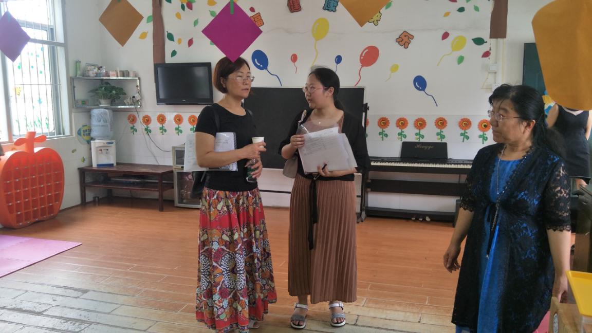 市教育局督导室钟慧瑜、督导评估专家周碧辉在明照乡中心幼儿园查看