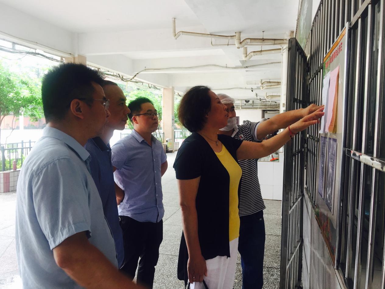 吴春雪实地查看了学校食堂托管情况,对食堂卫生环境、食堂学生就餐、陪餐制度和陪餐记录、食堂原材料来源、价格、带量食谱公示、食堂运营环节以及食堂"原辅材料成本不低于70%"和食品安全监管进行了详细的督查,对学校食堂托管工作给予了充分的肯定。