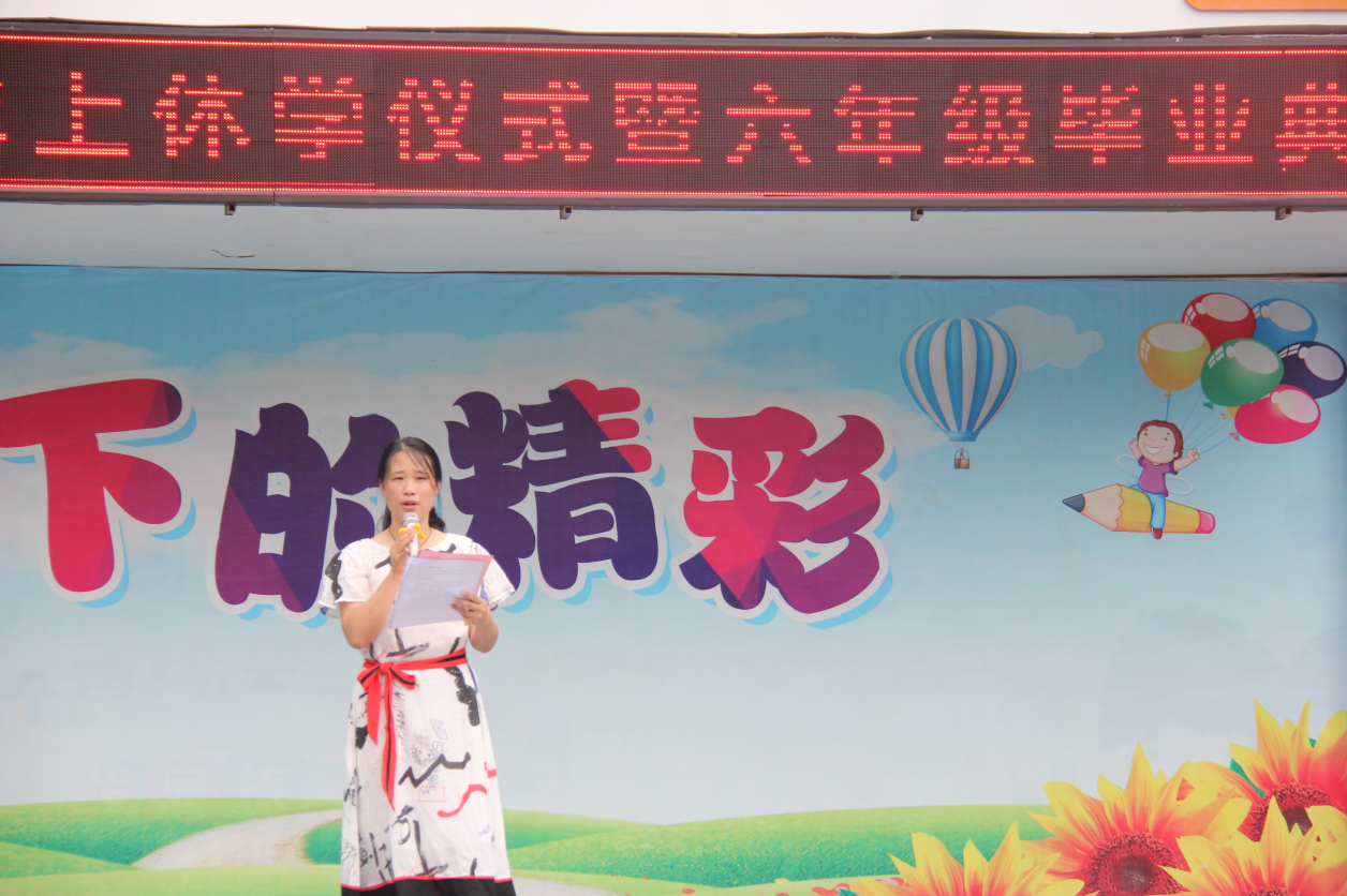 接着,学校德育副校长文芬给孩子们布置了能丰富生活、增长见识、开拓视野的假期实践作业;我的低碳生活争当节能减排小先锋活动、我爱读书品位经典读书活动、我和我的祖国学唱红歌活动、劳动最光荣我是劳动小能手活动、我锻炼我健康阳光体育活动、知古通今亲子共赏纪录片活动、小手牵大手志愿者活动,号召孩子们争做习主席提出的德智体美劳全面发展的新时代好少年。另外,文校长还就假期安全方面给同学们送上了几点温馨提示,希望同学们能够过一个平安、快乐而有意义的暑假。